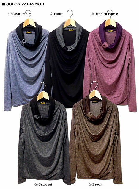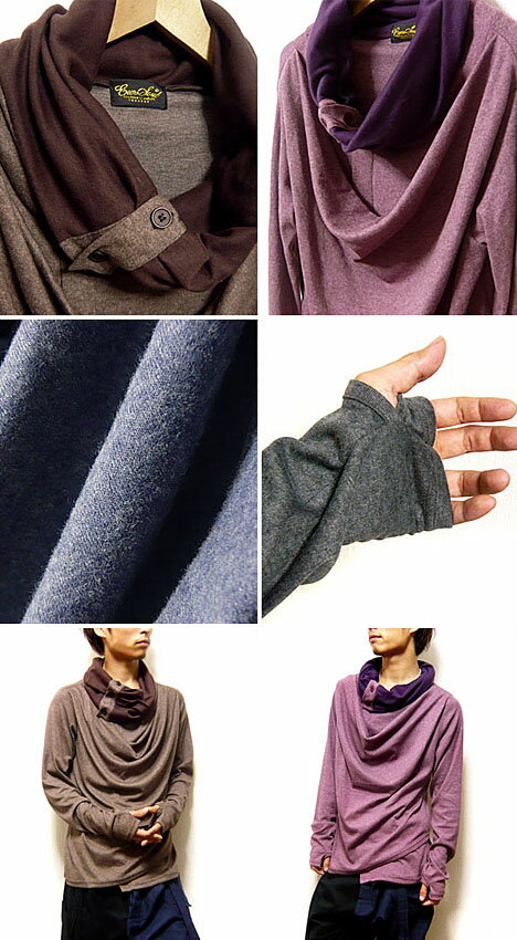 ボタン使いのボリュームネックにルーズなドレープシルエット、指穴付きの袖などトレンド満載の長袖ドレープカットソー!生地は肉厚なソフト起毛で肌触り抜群&これ1枚でもかなり暖かいのでヒートテック要らず!個性的なデザインでサロン系やキレイ目系にオススメの長袖カットソーです!ジャケットやアウターのインナーとしても大好評!とにかく類似品とは質感が違います!カラー:ブラック,ライトデニム,チャコール,レディッシュパープル,ブラウンサイズ:F(フリーサイズ)対象:メンズスタイル:サロン系,キレイ目系,モード系,チョキチョキ系【あす楽対応 北陸 関東 東海 関西 中国 】【即日発送】【即納】【翌日配送】【※土日祝除く】【 バレンタイン プレゼント 誕生日 バースデー 父の日 ギフト ラッピング 】他人と被らない個性派デザインのメンズファッション探すなら「EVERSOUL+PLUS」!【EVERSOUL:「Palomides Turtle neck LST」:ボリュームネックドレープ指穴付きカットソー】ボタン使いのボリュームネックにルーズなドレープシルエット、指穴付きの袖などトレンド満載の長袖ドレープカットソー!生地は肉厚なソフト起毛で肌触り抜群&これ1枚でもかなり暖かいのでヒートテック要らず!個性的なデザインでサロン系やキレイ目系にオススメの長袖カットソーです!ジャケットやアウターのインナーとしても大好評!とにかく類似品とは質感が違います!■写真のモデル着用のパンツはこちらのアイテムです ⇒EVERSOUL サスペンダー付きダブルウエストサルエルパンツ】 ■ボタン使いのボリュームネック! ■ルーズなドレープシルエットが自然に! ■厚手のソフト起毛で肌触り抜群です! ■両袖口は指穴付きになっています! ■トレンド満載のドレープカットソー! ■身長165cm / 体重52kg / Fサイズ着用 ■写真のモデル着用のパンツはこちらのアイテムです ⇒EVERSOUL バイカラー切替サルエルパンツ】 F(フリー) 着丈 約 68cm 身幅 約 50cm 肩幅 約 42cm 袖丈 約 72cm シルエット 標準 生地厚 やや厚手 素材 ポリエステル65%綿35% ※サイズの測り方はこちらをご覧下さい。