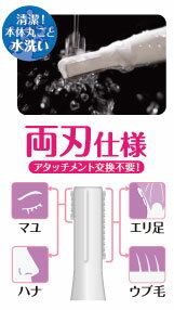 ◆本体両面に長さの異なる刃を搭載しているので、アタッチメントを交換せずムダ毛剃りや眉毛のケアができます。