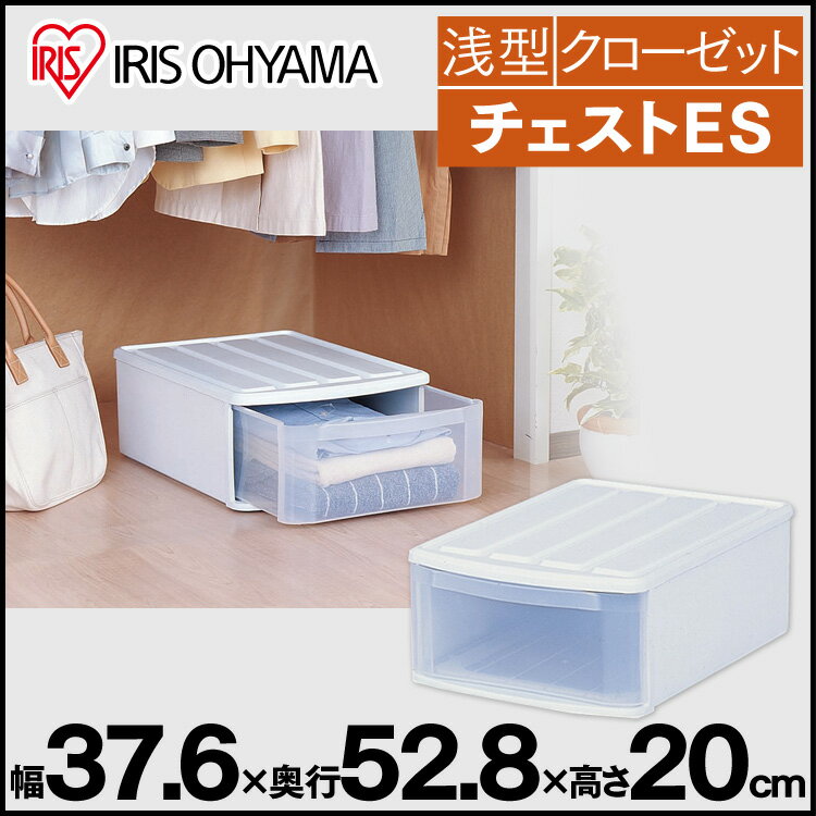 チェスト ES 収納ケース 収納ボックス アイリスオーヤマ送料無料 ホワイト クリア 幅37.6×奥行52.8×高さ20cm クローゼット 家具 衣類収納 衣替え 家具 収納用品 たんす タンス 収納 衣服収納 衣類ケース 衣服ケース 小物 ボックス 引っ越し 収納家具